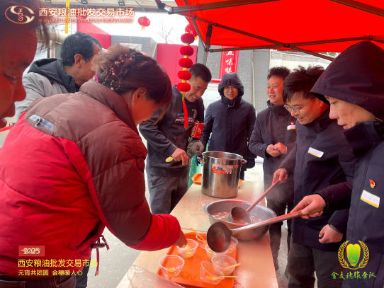 “天寒難鎖新春意,爐暖宜烹白玉丸。”乙巳年農(nóng)歷正月十五,西安糧油批發(fā)交易市場精心策劃并舉辦了“元宵共團(tuán)圓,金穗暖人心”主題活動(dòng)。此次活動(dòng)吸引了市場商戶、消費(fèi)者、裝卸工、貨車司機(jī)等500余人參與,大家共同度過了一個(gè)充滿傳統(tǒng)韻味與現(xiàn)代溫情的元宵佳節(jié)。